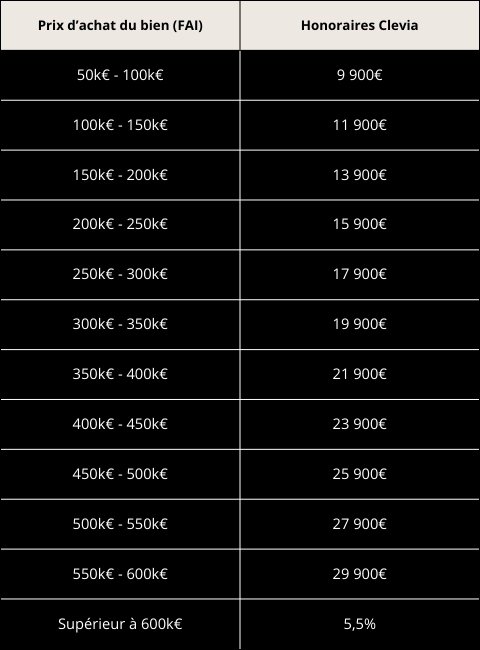 Les honoraires à payer à Clevia par le client sont de : 15 900€